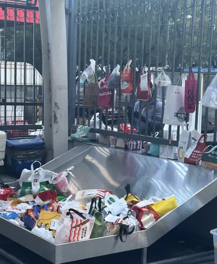 工作人员说,外卖桌那块以前老是丢外卖,派出所一天接到很多报警,于是想办法安了一个那样的快递桌,他们认为滑进学校里更有安全保障。这名工作人员认为,将外卖桌安在保卫室边上,保安可以整理下外卖和快递,这样暂时能解决丢外卖的问题。