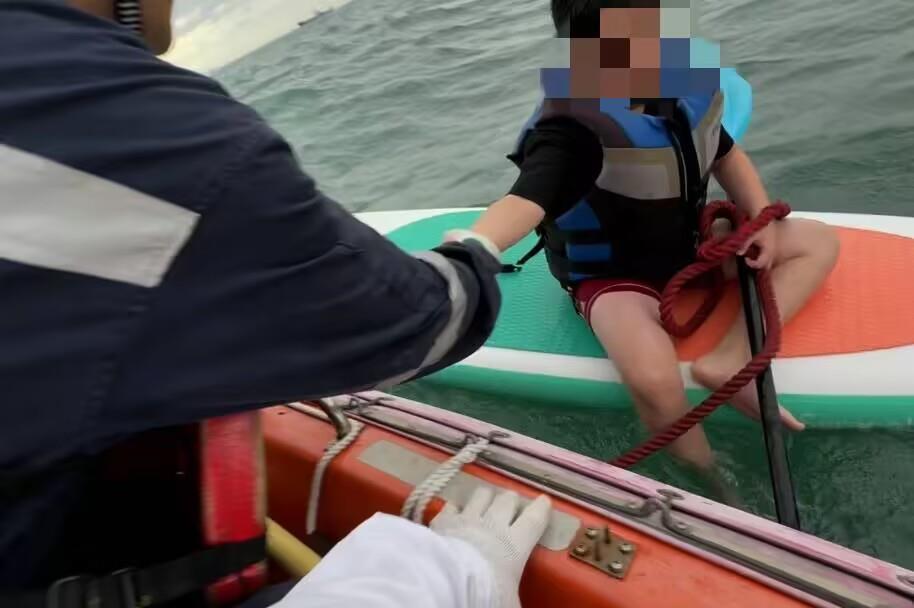 现场救援视频显示,划桨板的是一名身穿救生衣的小男孩,他告诉救援人员自己才10岁。