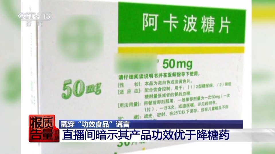 此外记者看到,带货主播手中的宣传板还将该产品与“二甲、格列、阿卡”进行对比。据了解,“二甲、格列、阿卡”均为缩写,是现阶段治疗糖尿病的三种常用药。