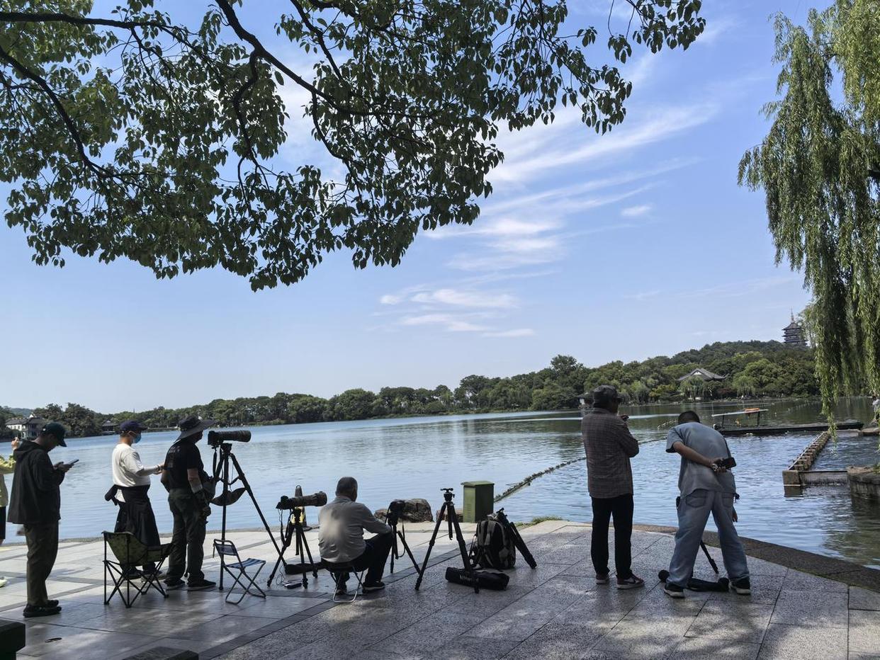 6月16日不少摄影爱好者蹲守“鱼跃西湖”的画面。摄友@吉吉 摄