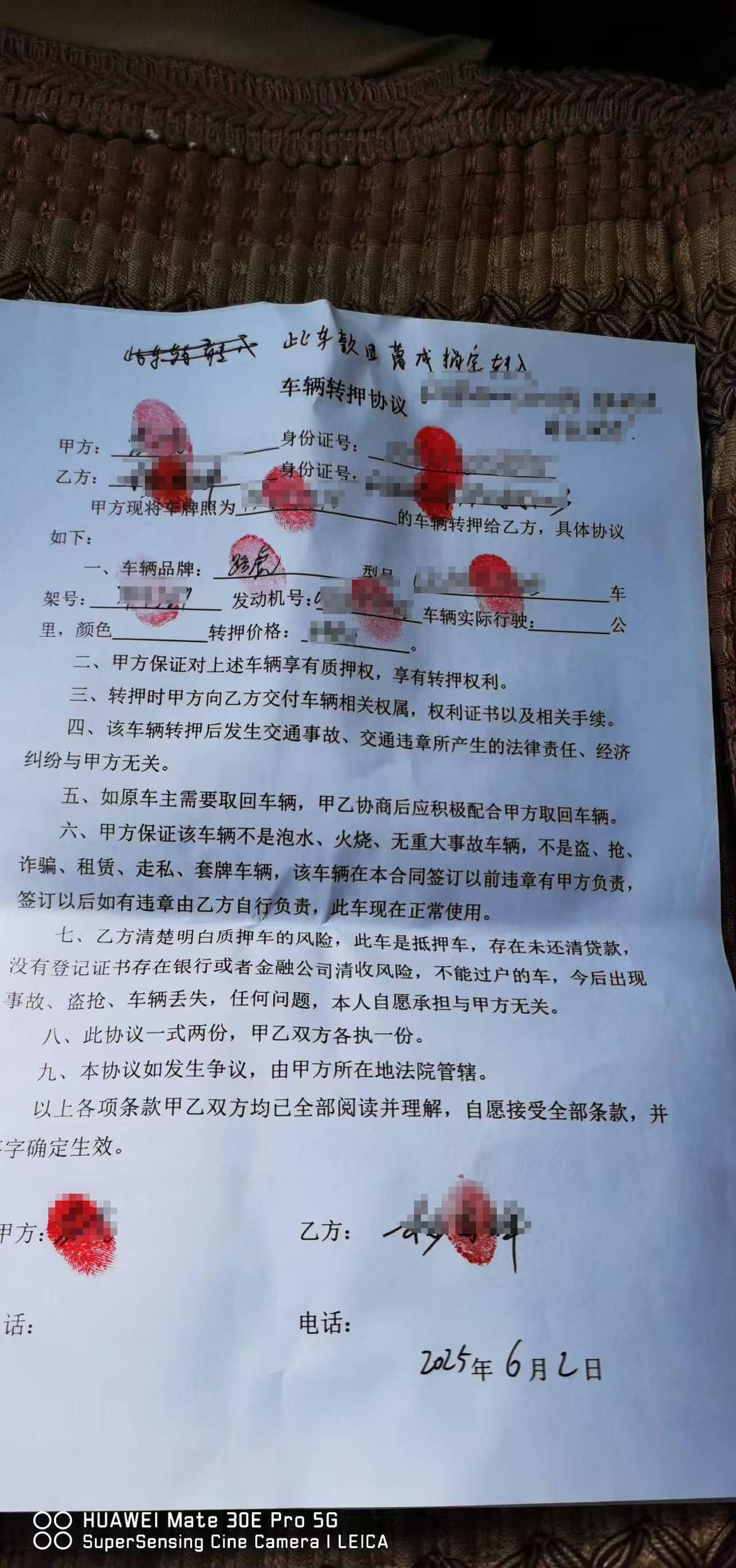 记者看到,所谓的购车合同其实是一个“转押协议”,协议中称甲方保证对上述车辆享有质押权、转押权,如原车主需要取回车辆,甲乙协商后应积极配合甲方取回车辆。乙方清楚质押车风险,不能过户,没有登记证书,存在银行或金融公司清收风险。任何风险本人自愿承担,与甲方无关。