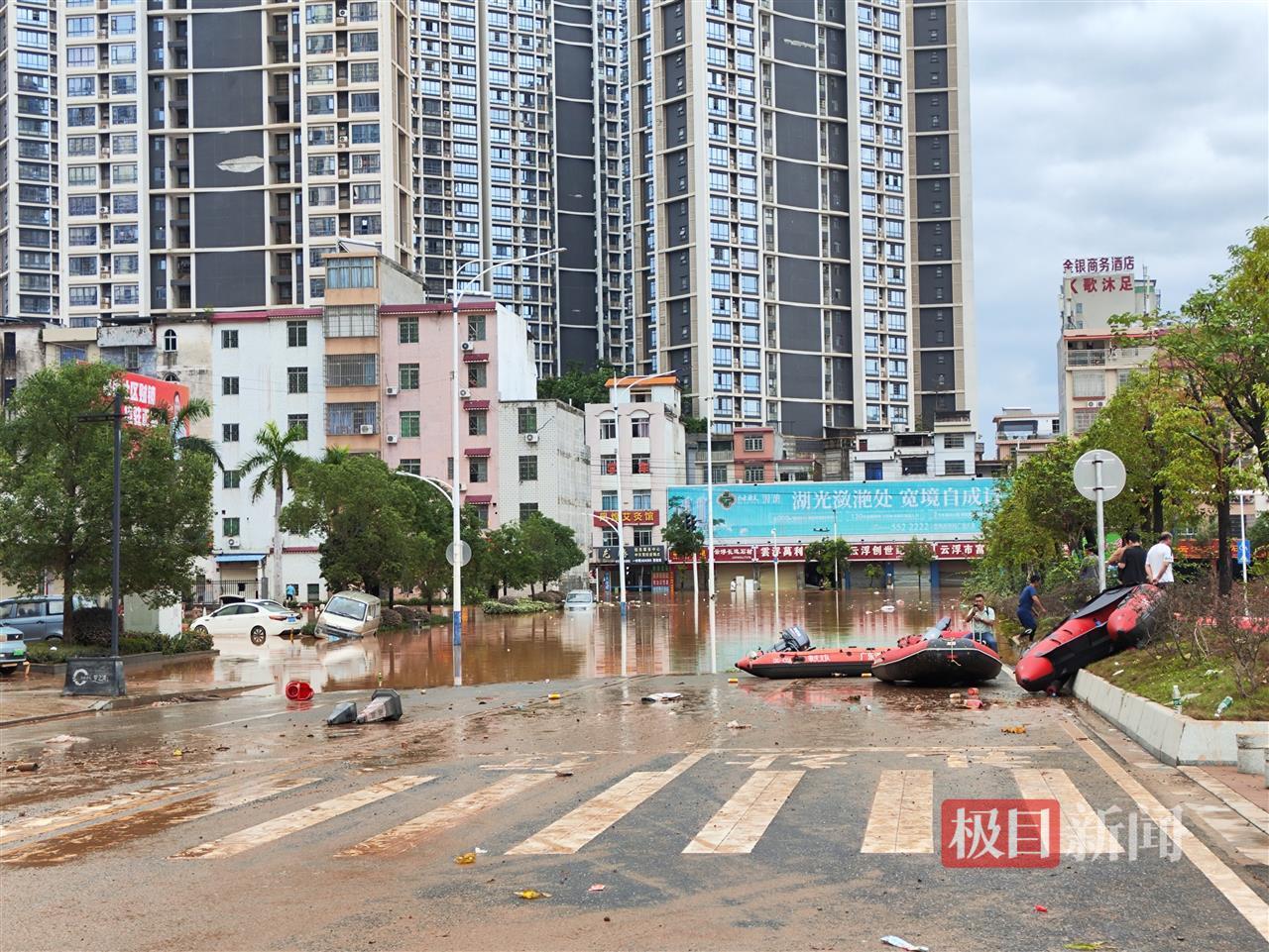 一对刚转移出来的夫妇告诉记者,他们住在距离路口大约700米的燕都广场,这里16日便开始涨水,当时水浸还只有几十厘米,但到了17日下午,雨势猛烈,水位开始上升,淹到了二楼。