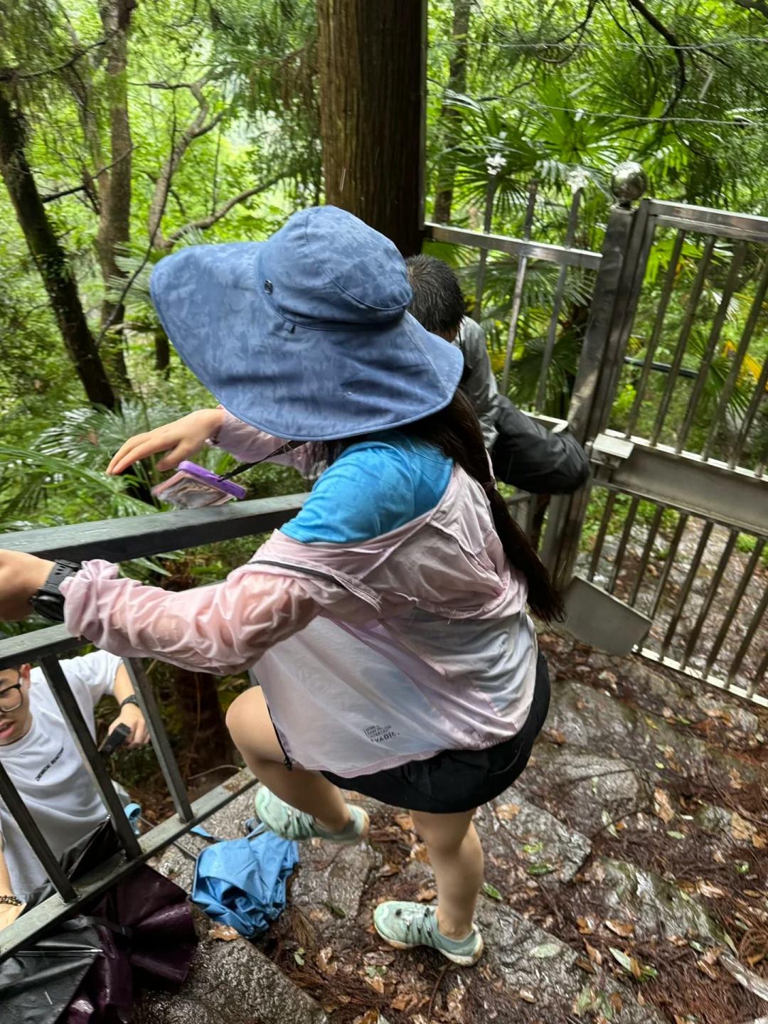“网上推荐的拍照点,需要翻栏杆进去,雨天比较滑。”