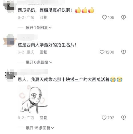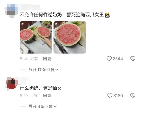 网友在评论区表示“无法想象没有西瓜的世界”纷纷晒出自己吃的瓜祝福奶奶身体健康