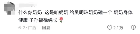 6月初,95岁“西瓜奶奶”吴明珠的孙女杨晓寒以相同的句式,介绍了自己的“西瓜奶奶”吴明珠。杨晓寒发布的视频,已获得超225万+点赞。人们将其称为“这个赛道最权威的存在”,纷纷“磕头”、道谢,表示“不允许有任何人忤逆她”。