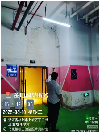 基于现场实际情况,6月18日,物业对渗漏区域基层进行全面卫生清理,并对渗漏位置上方天井内地面进行防水保护刷涂作业,以此进一步观察、判断渗漏原因,明确是由管道渗漏还是顶部空调滴水所导致。接下来,还会依据前期观察结果,针对渗水部位采取相应的维修措施。待墙面完全干燥后,对顶部因渗水导致发霉的部位进行墙面铲除,并重新进行刷白处理。预计该点位的维修工作将于6月完成。