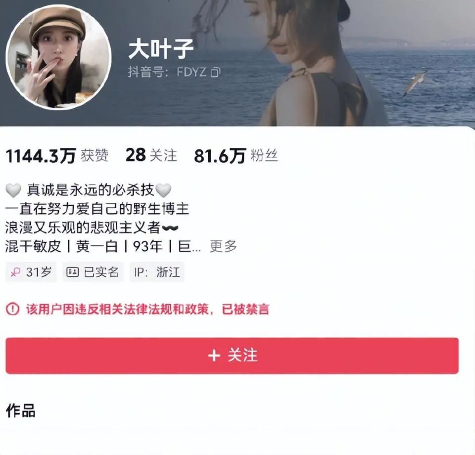 大叶子回应称,“从未主动炫富,拍摄豪宅内容系因直播流量低迷,在粉丝建议下尝试吸引关注。”目前,该博主的抖音已被禁言,其当前粉丝数为81.6万。