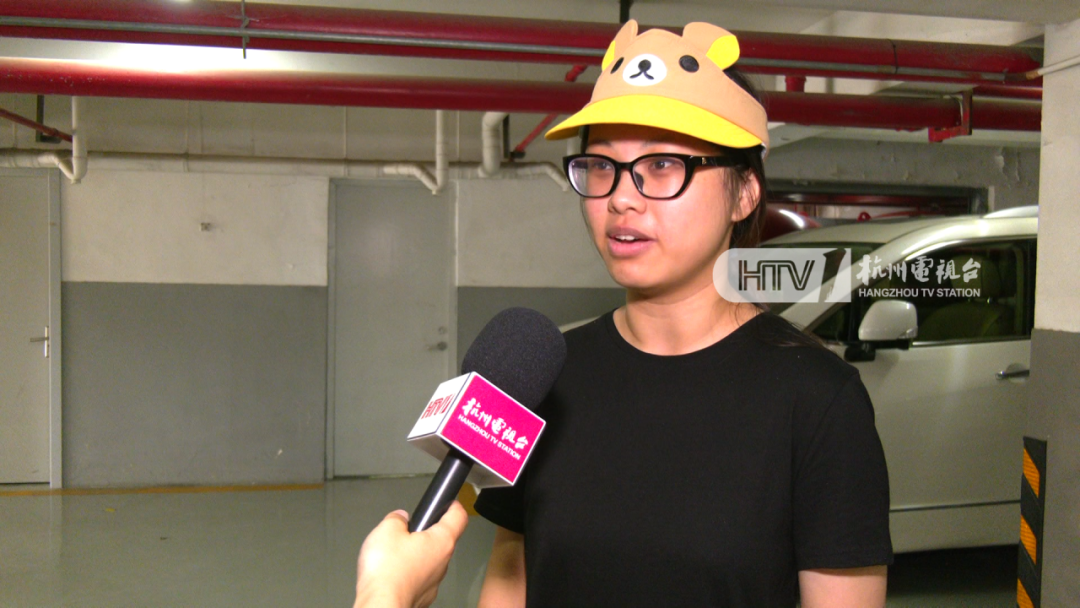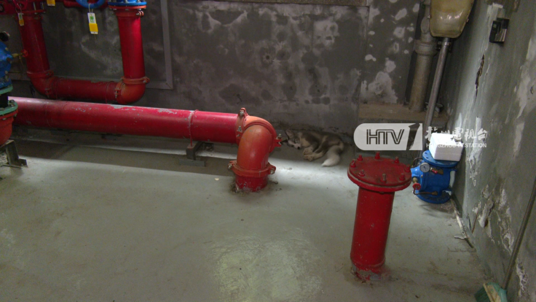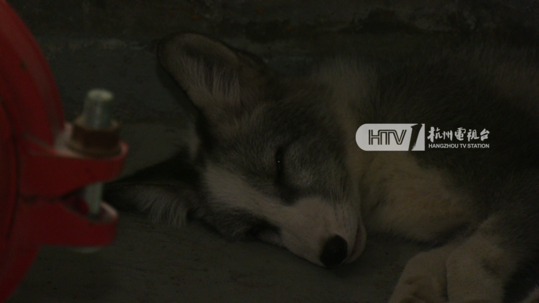 20日,在西湖传媒中心的地下停车场,记者看到了这只体型不大的动物,它蜷缩在墙边睡着了。