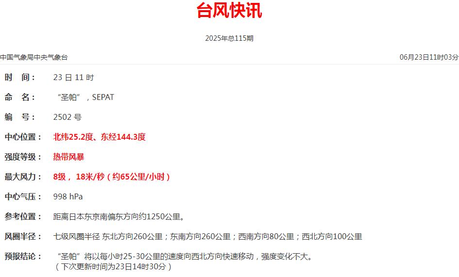 今年第2号台风“圣帕”于23日08时在西北太平洋洋面上生成。