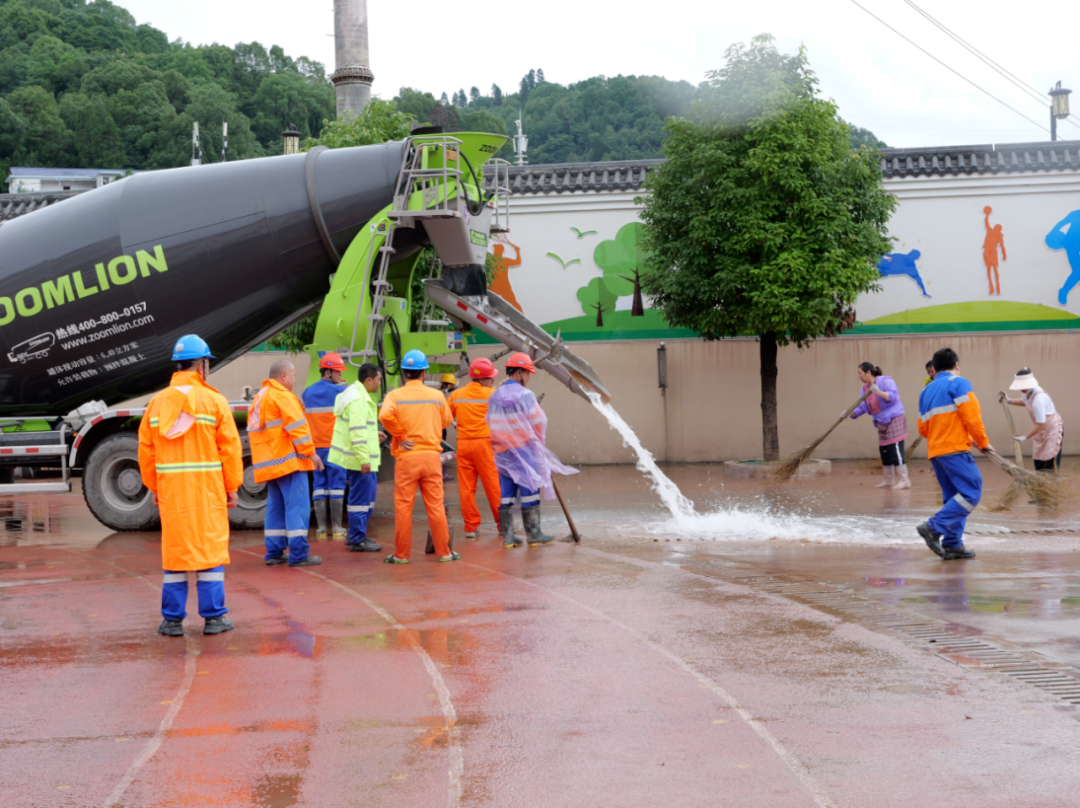 得知桑植县城区有些地方水压不足,华新桑植公司紧急调配了12台混凝土搅拌车和2台泵车组成“移动供水队”,以工厂为水源点,每天向城区多次运送清淤所需要的水源,每台搅拌车可装载16吨水,能有效为灾后清淤提供充足用水。该公司还迅速组建数十人的志愿者服务队,奔赴受灾最严重的街道,对堆积的淤泥、垃圾展开全面清理。