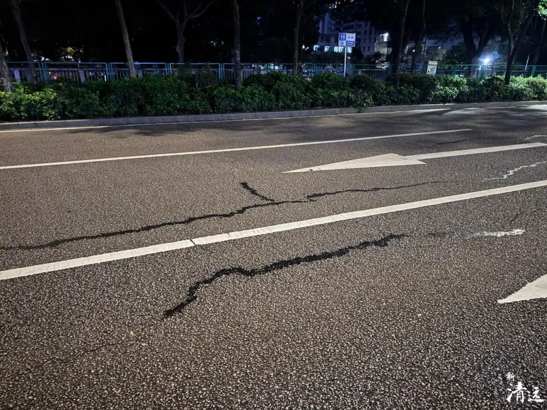 清远地震后,有网友发照片称,清城区东城大道培英学校路段出现道路裂痕。记者赶赴现场核实,该“裂痕”实为此前修补道路使用的沥青,非此次地震造成的破坏。