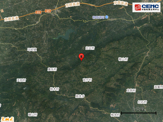 震中地形:震中5公里范围内平均海拔约767米。