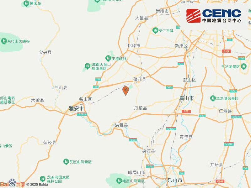 中国地震台网正式测定:6月24日6时27分,在四川成都市蒲江县(北纬30.11度,东经103.41度)发生3.6级地震,震源深度8公里。