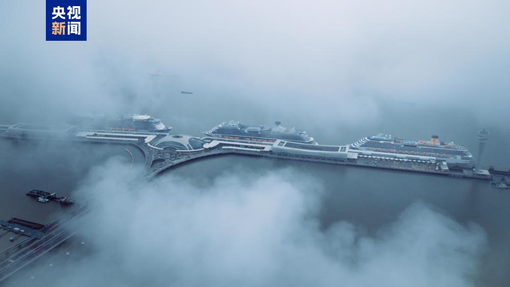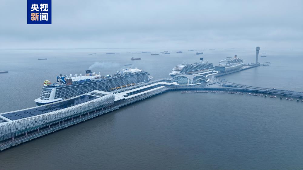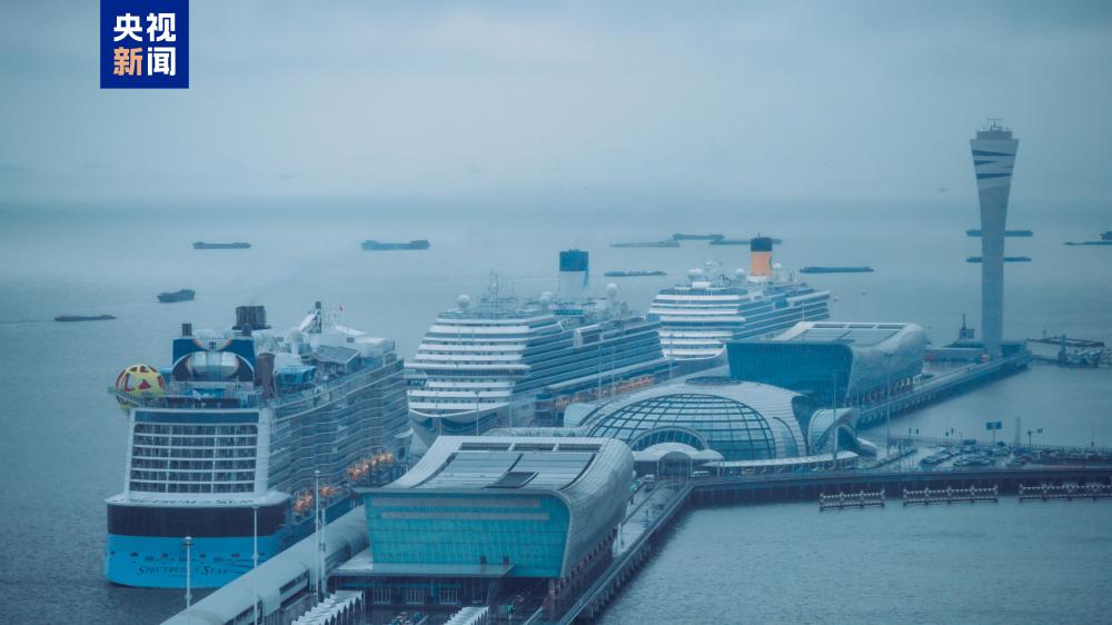 当日,歌诗达赛琳娜号、皇家加勒比海洋光谱号以及爱达魔都号三船同靠,场面蔚为壮观。