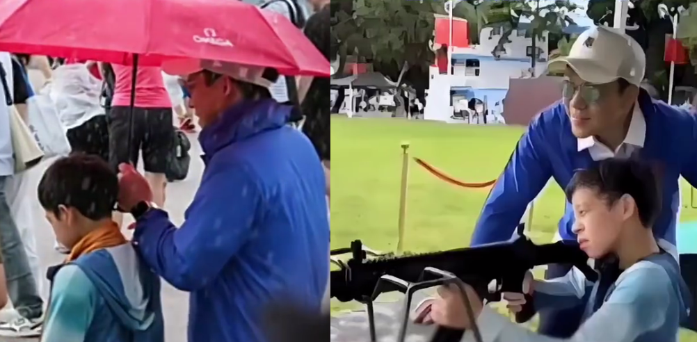 驻港部队军营向公众敞开大门,吸引众多香港市民前来观摩。霍启刚父子身着同色系休闲装低调现身,蓝色外套搭配黑色长裤的简约装扮与普通市民无异。当天霍中曦还在军营体验了握枪,姿势帅气标准,霍启刚在一旁微笑观看。