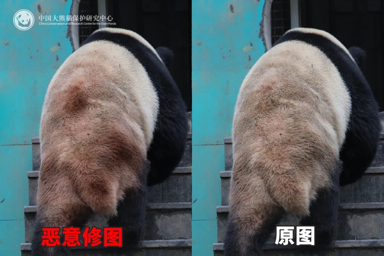 在网上,网友说经常看到大熊猫背部或臀部出现“洞”并且该“洞”疑似有“血色”,称之为“血洞”,脑补画面“饲养员用铁棍打熊猫”,或者是“对大熊猫做黑实验抽骨髓、脊髓、下丘脑”造成的……24日,中国大熊猫保护研究中心发布了一组图片,以正视听: