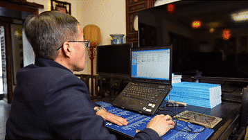 灯彩(汴京灯笼张)代表性传承人张俊涛搭建中国传统纹样数据库。