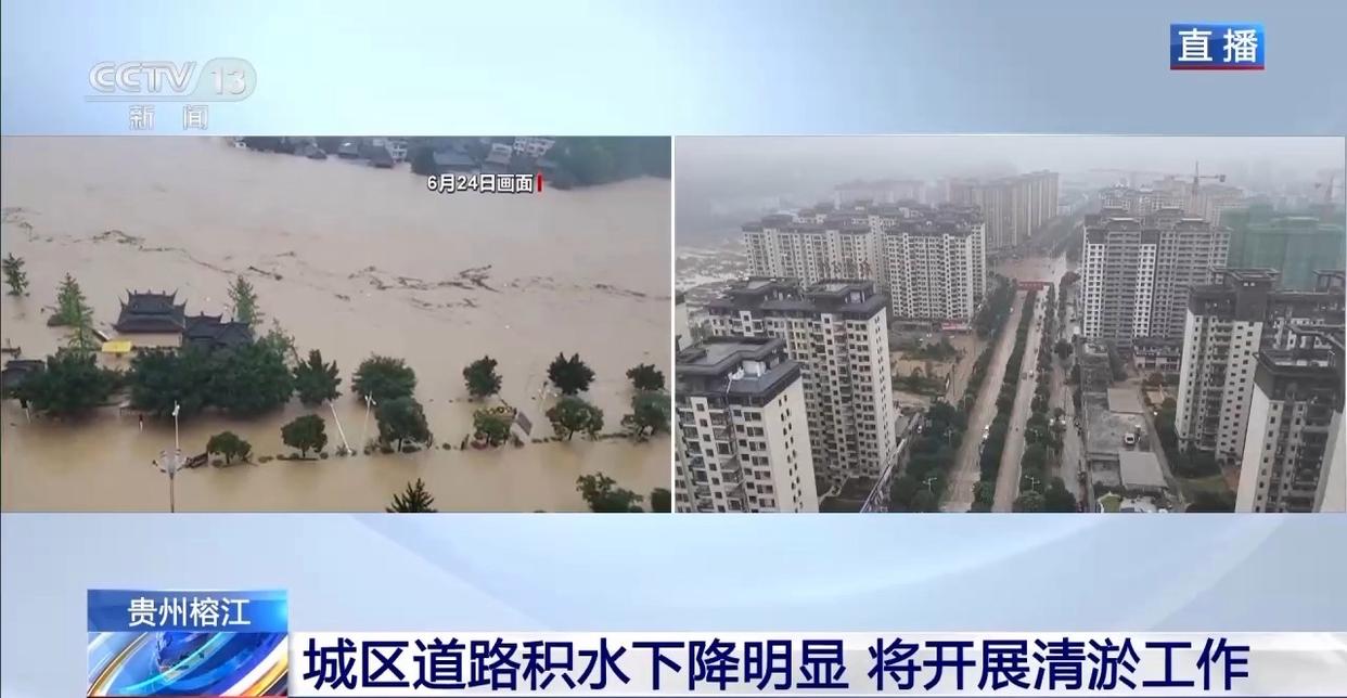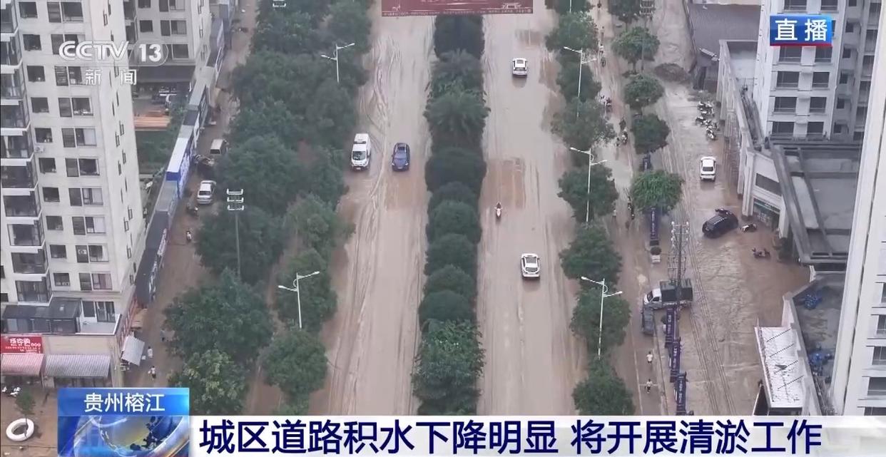 总台记者 陈春晓:我现的位置是在榕江县新城的同心大道上,为什么从昨天一直到今天坚守在这附近给大家发回最新的报道呢?因为这里是集中了10个比较大型的小区,并且还有学校。经过一夜,现在道路上的积水已经退了下去,还有一些淤泥,目前我所在的这条路已经恢复了半幅的通行。