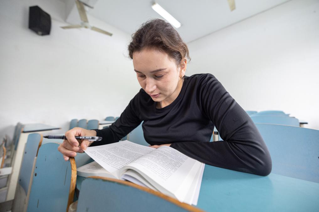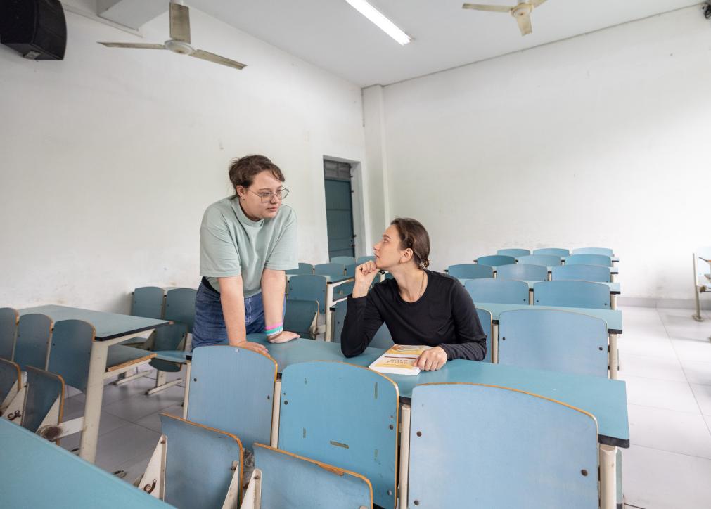 ↑2025年6月24日,莎河娜斯(右)请同学辅导考研面试。