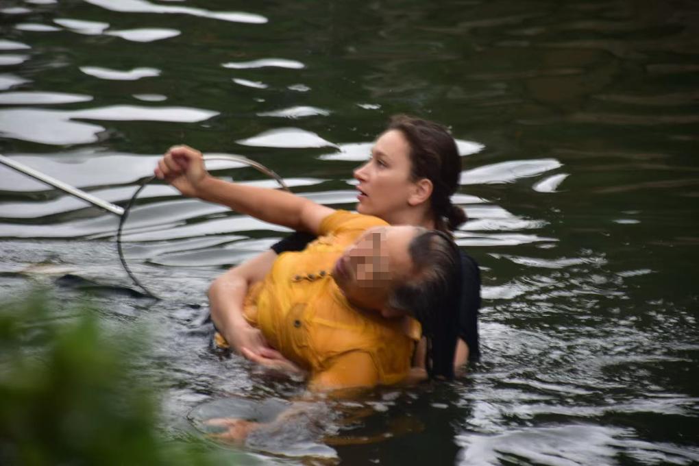 ↑2025年6月23日,莎河娜斯对落水老人进行施救(受访者供图)。