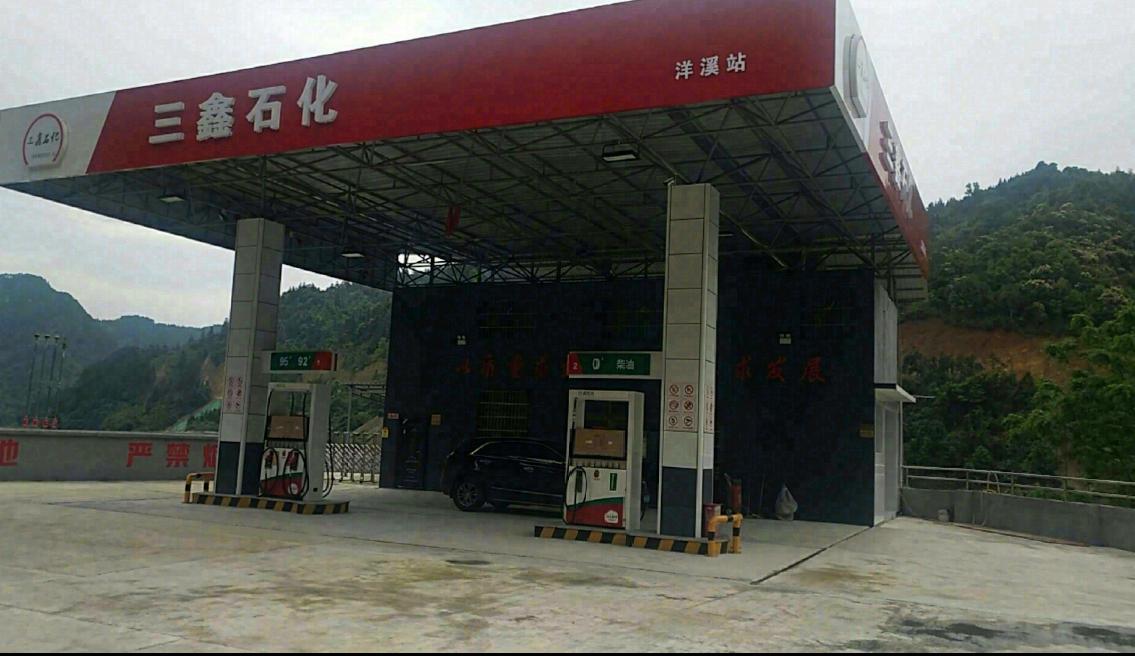 记者联系洋溪乡洋溪村,一位知情者介绍称,“是321国道从乡卫生院下去的一个加油站在洪水中倒塌。”