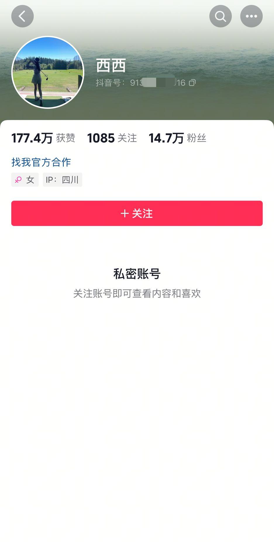 6月26日,大皖新闻记者查询西绿的社交账号发现,粉丝有14.7万,但是目前该账号显示为私密账号,看不到相关视频内容。