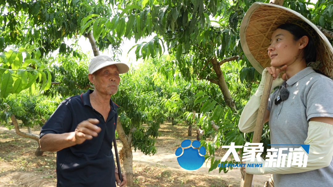 福贵摘来一大兜,记者捡了一个软一点的尝尝,确实甜,桃香味也足。