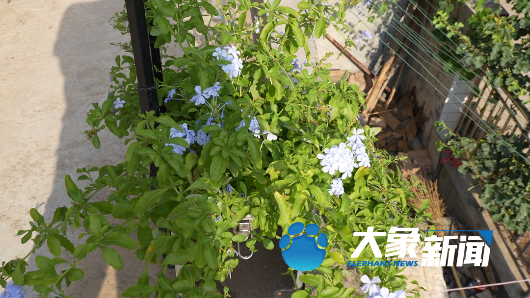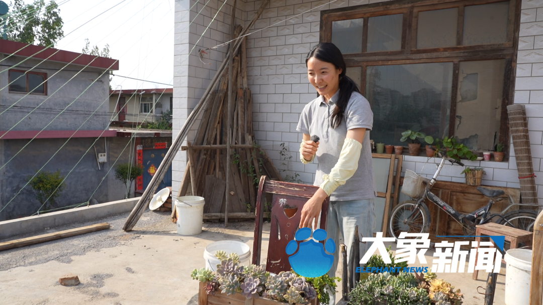 福贵爱养花,不仅在二叔家的露台上种满了多肉,自家门前小院,也被她养的盆栽占据了大半。