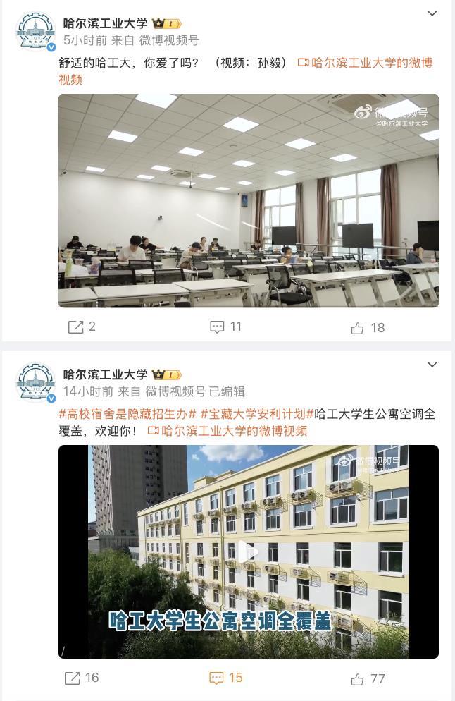 近日,东北多所高校学生发视频吐槽“高温”,大家还大开脑洞运用各种方式降温。与此同时,6月26日、27日,哈尔滨工业大学接连发布两条视频,晒出“满屏”空调,令众多外校学子艳羡不已。视频中,学校每间学生公寓外墙上都挂着空调外机。教学楼、图书馆、健身房、体育馆内也都装有空调,学生们在凉爽的环境里学习运动。