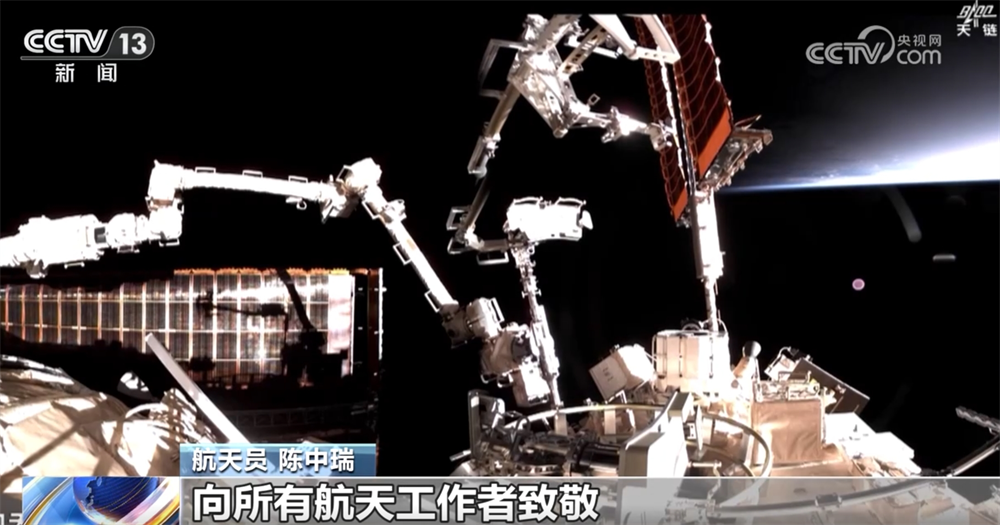 随后,机械臂将脚限适配器组合体安装至气闸舱口工具箱,航天员王杰在天和核心舱内密切协同。此次出舱活动历时约6.5小时,在空间站机械臂和地面科研人员的配合支持下,航天员乘组还完成了空间站空间碎片防护装置安装、舱外设备设施巡检及处置等任务。出舱航天员陈中瑞、陈冬安全返回问天实验舱,出舱活动取得圆满成功。