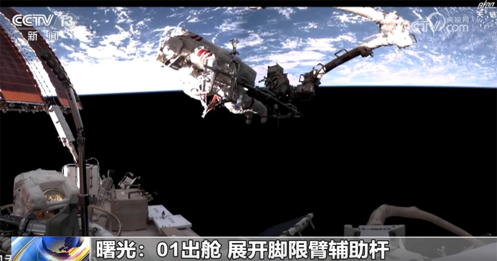 中国航天科技集团李学东称:“这个设备是我们空间站团队专门为提高出舱任务效率的一个改进,做的一个创新性设计。我们之前历次出舱任务,就是航天员出舱前、出舱后,把机械臂先运动到固定位置之后,航天员把脚限位器和操作台安装在机械臂末端,然后再转移到上臂点,航天员进行上臂这个任务。那么这次自动脚限位器安装完之后,我们后续在航天员出舱前,机械臂就已经到达上臂点了,航天员就不再需要装操作台和脚限位器到机械臂末端了,这样极大地提高了效率。”