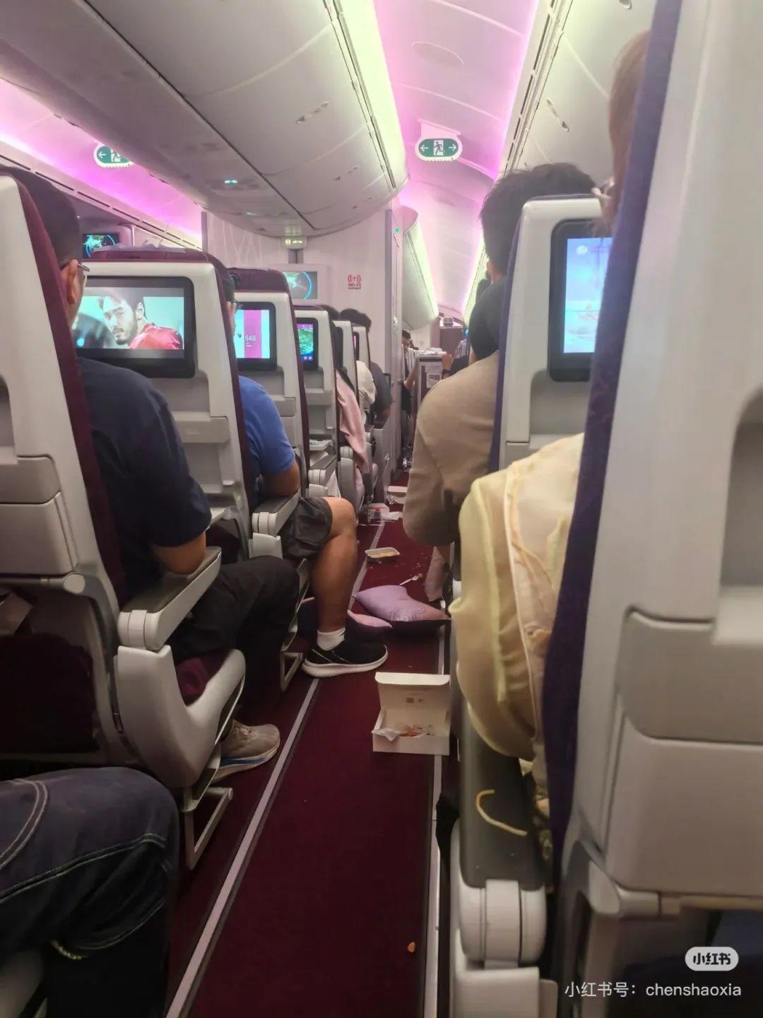 该网友表示,以前总觉得“飞机最安全”是真理,这次真的体会到什么叫“命悬一线”。飞机很快恢复平稳后,机务人员广播表示抱歉并询问客舱是否有乘客受伤。整个机舱食物毯子枕头随处可见,但因为心有余悸没人敢松开安全带收拾。