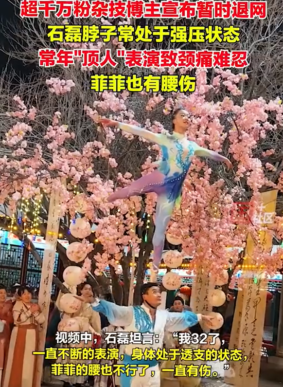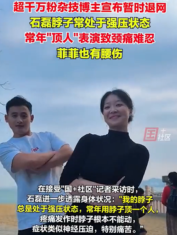 近日,全网粉丝超干万的杂技博主石磊、菲菲发视频,宣布暂时退网。