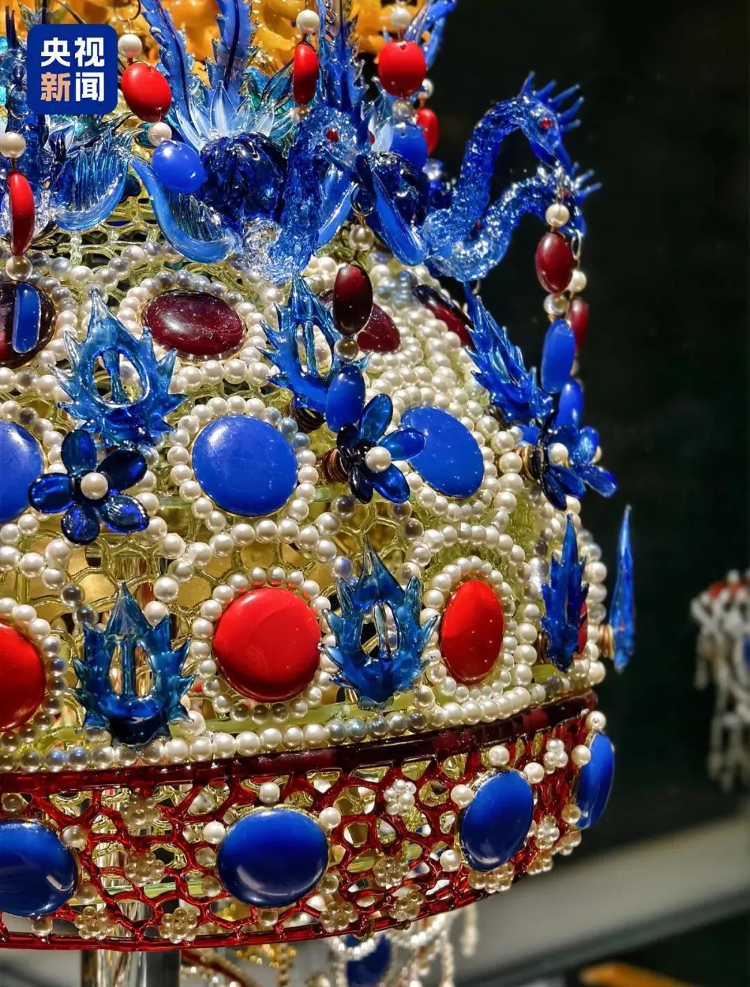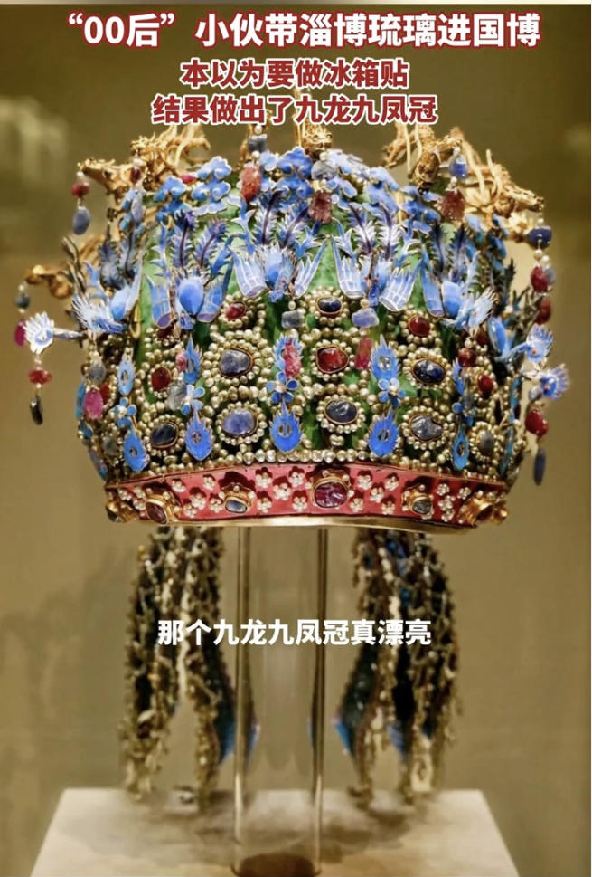 近日,这件用琉璃复刻的九龙九凤冠在中国国家博物馆“琉光璃彩——淄博琉璃艺术展”上,成为“顶流”,惊艳全场!