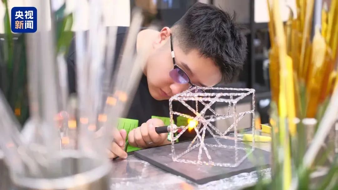 材料上,孙启烨选择了淄博特有的一种琉璃“软料”进行制作,这种材料操作难度极高,但成品的通透感与表现力令人着迷。