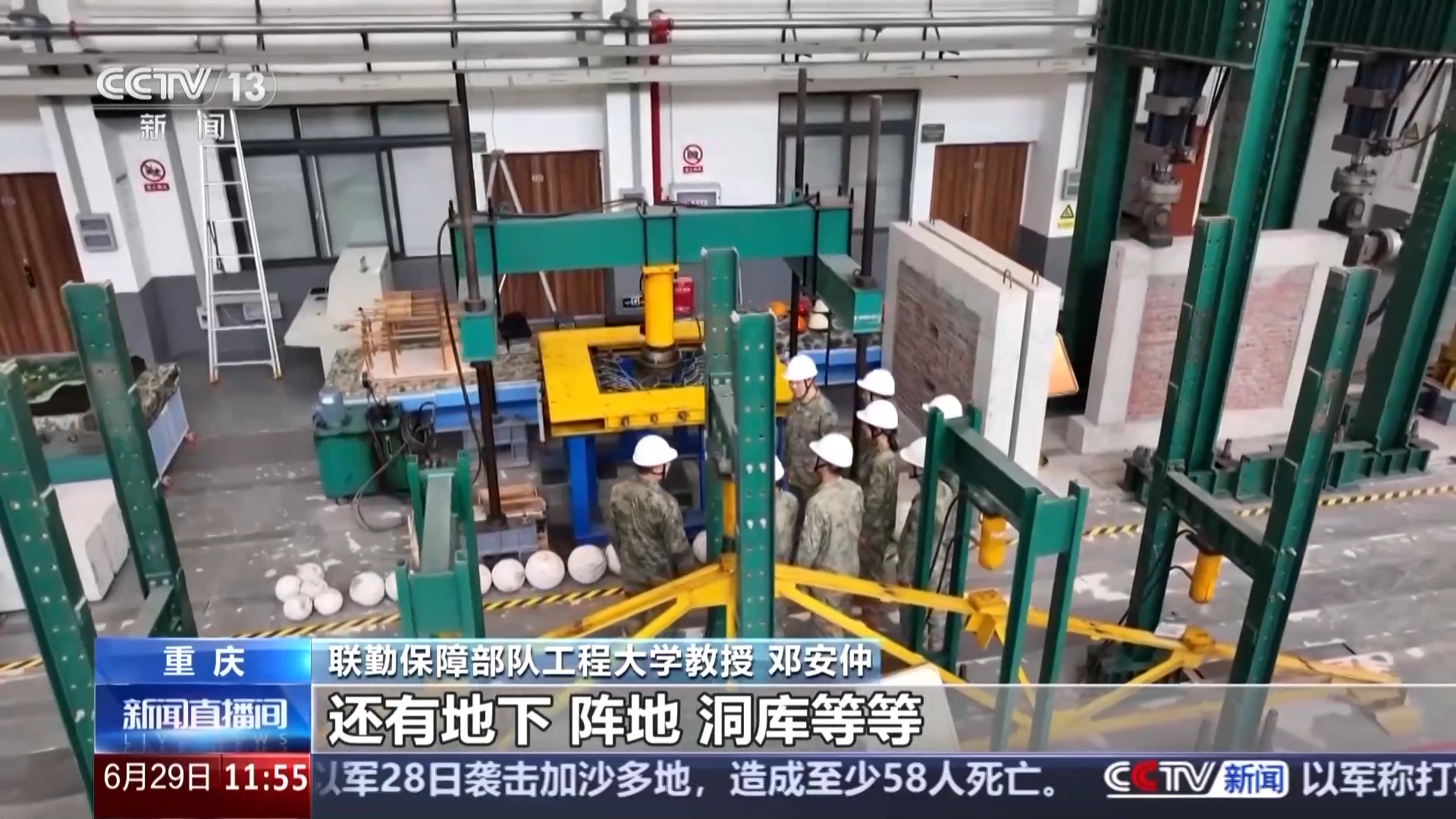 联勤保障部队工程大学教授 邓安仲:现在我们这个实验室,叫军事地下建筑工程实验室,是咱们全军重点实验室,它的作用就是为我们的军事设施、战场设施提供科技支撑。比如说我们高原高寒极端恶劣情况下的一些边防设施,还有地下、阵地、洞库等等重大的国防工程设施,像这台试验设备,它就是专门研究怎么提高军事工程的防护能力,比如说弹丸的检测、爆炸冲击波的冲击,怎么能够更有效地为军事工程、为工程里面的人员装备提供更好的防护。