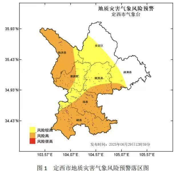 甘肃省定西市应急管理局、定西市自然资源局与定西市气象局6月29日13时联合发布定西市地质灾害气象风险预警: