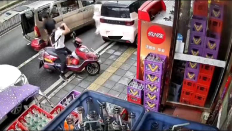 网友提供的现场视频显示,6月27日下午,贵阳市花溪区一处临街的饮料店门前,有两名男子疑似从面包车上正在清理货物,一名穿白色汗衫背包的男子骑在摩托车上,还有一位女士也站在店门口。