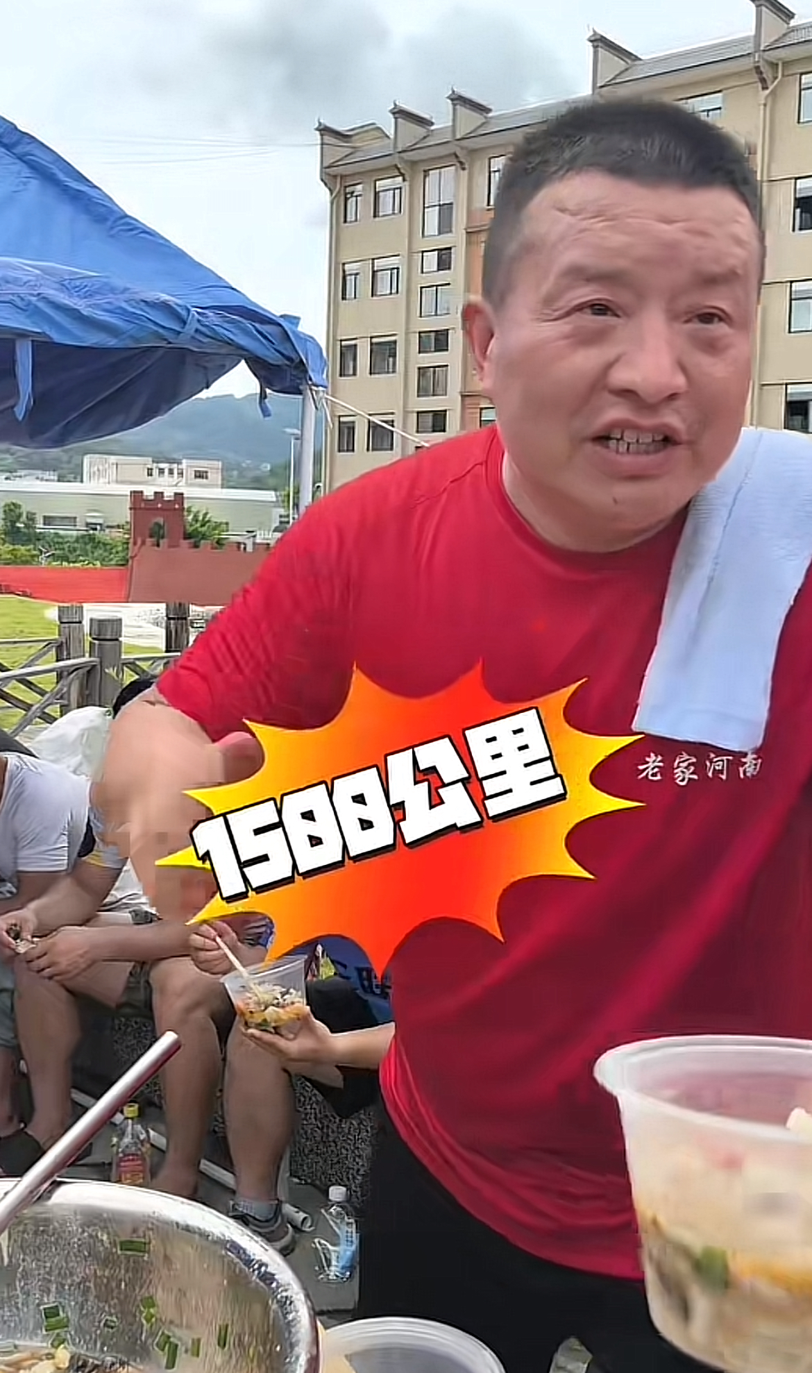 河南大哥带6000份烩面一夜驾车1500公里赶到榕江灾区,让群众吃上热面。网络截图。