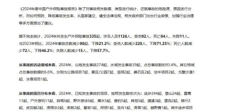 2025年中国探险协会公布《2024年度中国户外探险事故报告》。 图片来源:中国探险协会微信公众号