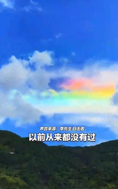 近日,支教老师毕先生在四川凉山的山路上,偶遇天空中出现一长排七彩祥云,绵延好几个山头,毕先生在受访时说:“这是我生平从没见过的美景,希望给大家带来好运。”