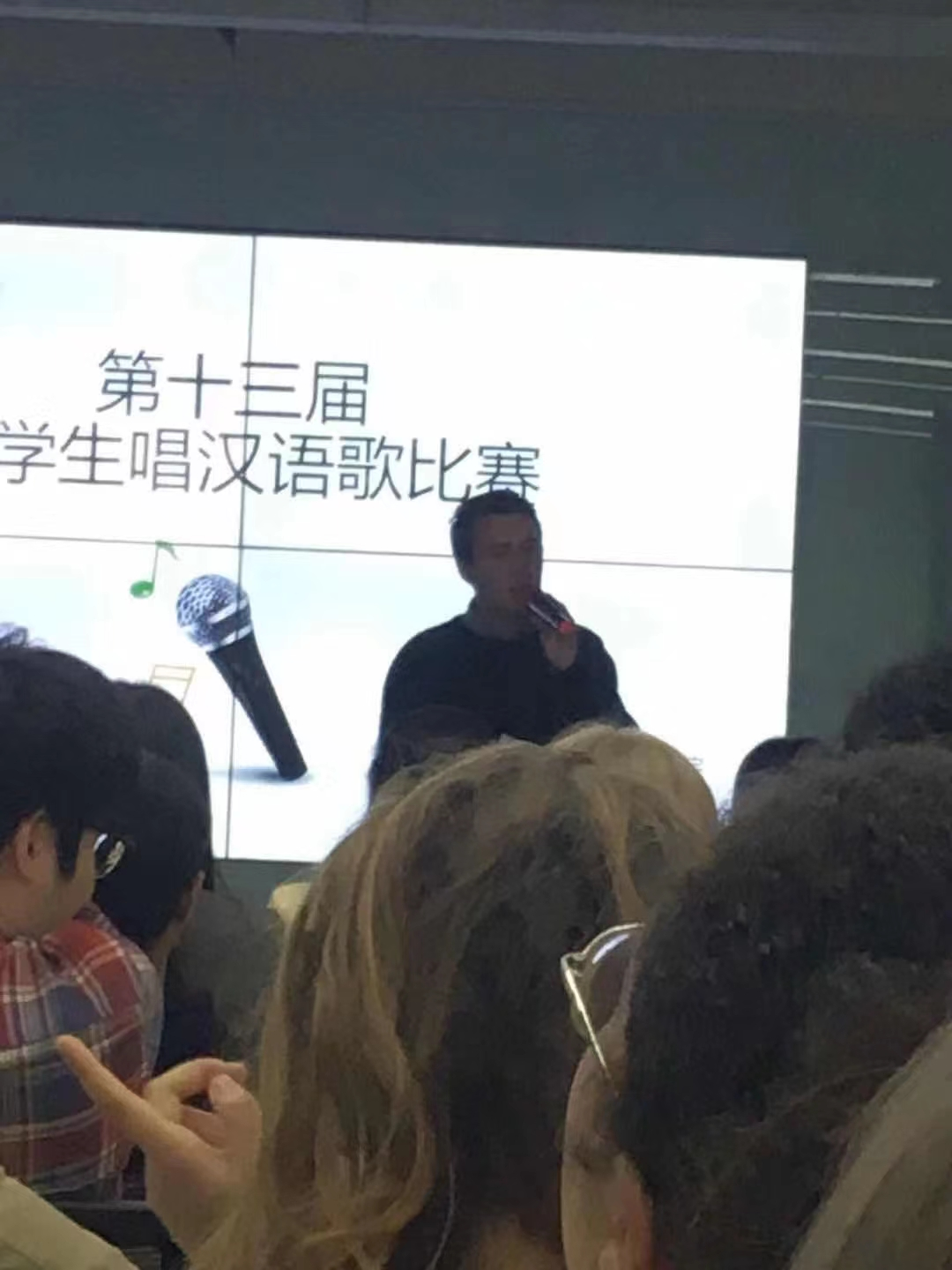 杰凯在中国留学时参加留学生唱汉语歌比赛。