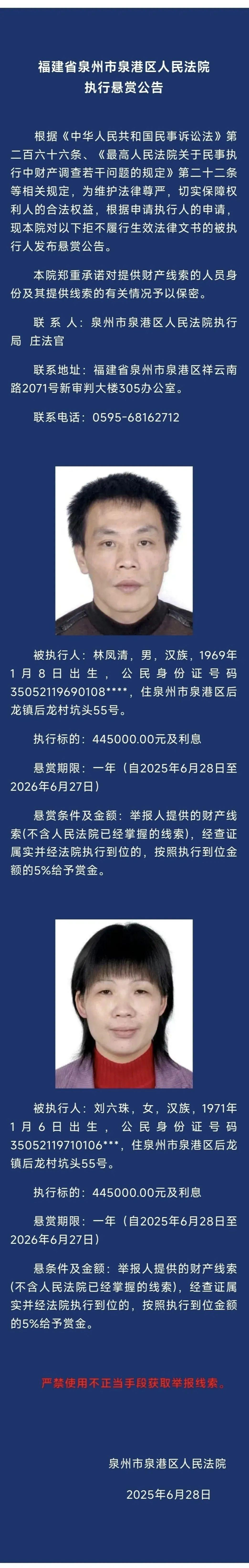 泉港、南安发布悬赏公告