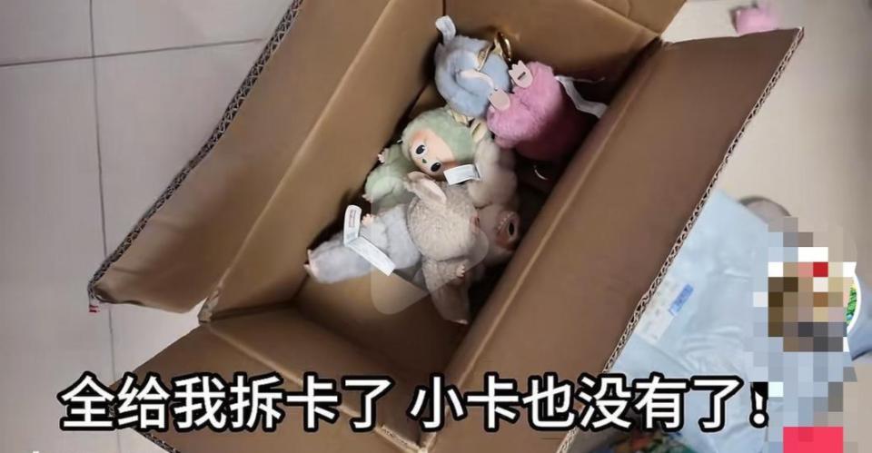 罗女士拆开快递盒后看到,6个盲盒都已被拆封,没有外包装、包装袋以及每个玩偶配套的盲盒卡片,这让罗女士无法接受。