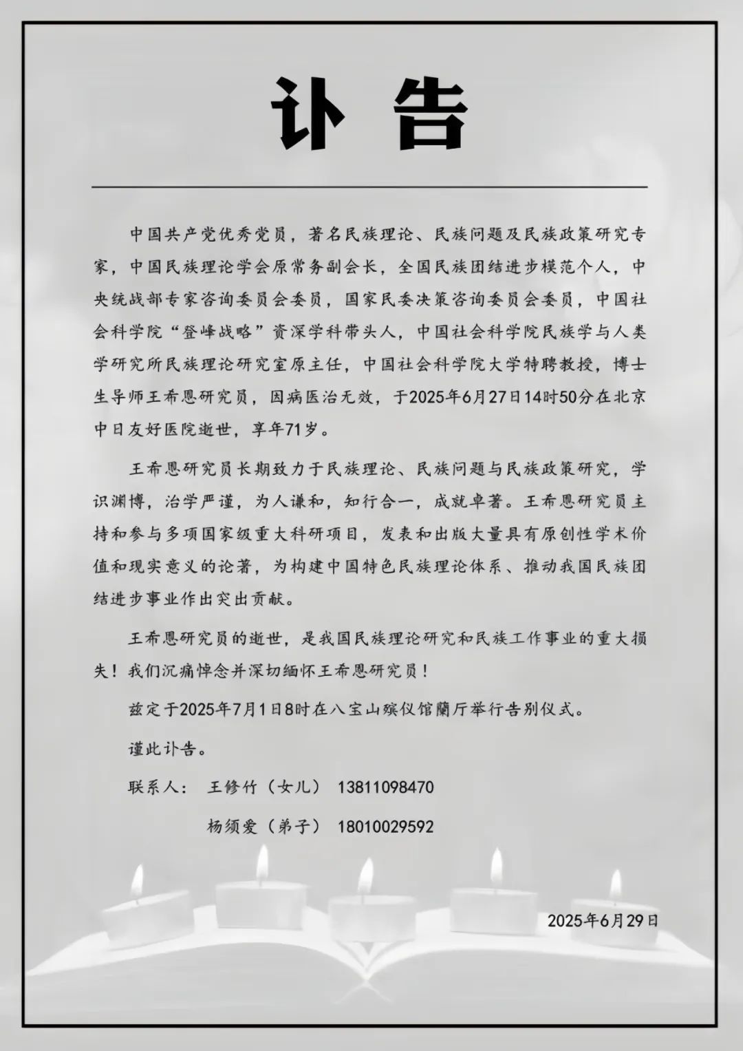永远怀念 著名民族理论、民族问题及民族政策研究专家王希恩研究员逝世