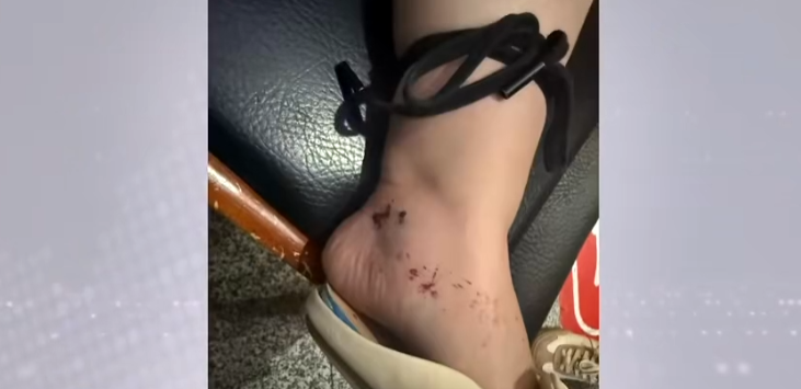 电梯内的监控记录下了赵女士被咬的全过程,可见这是一条呈灰黑色的蛇。事后赵女士回忆:“先感觉脚有点疼,看到有黑色的血往外冒,然后小腿膝盖就麻了”。