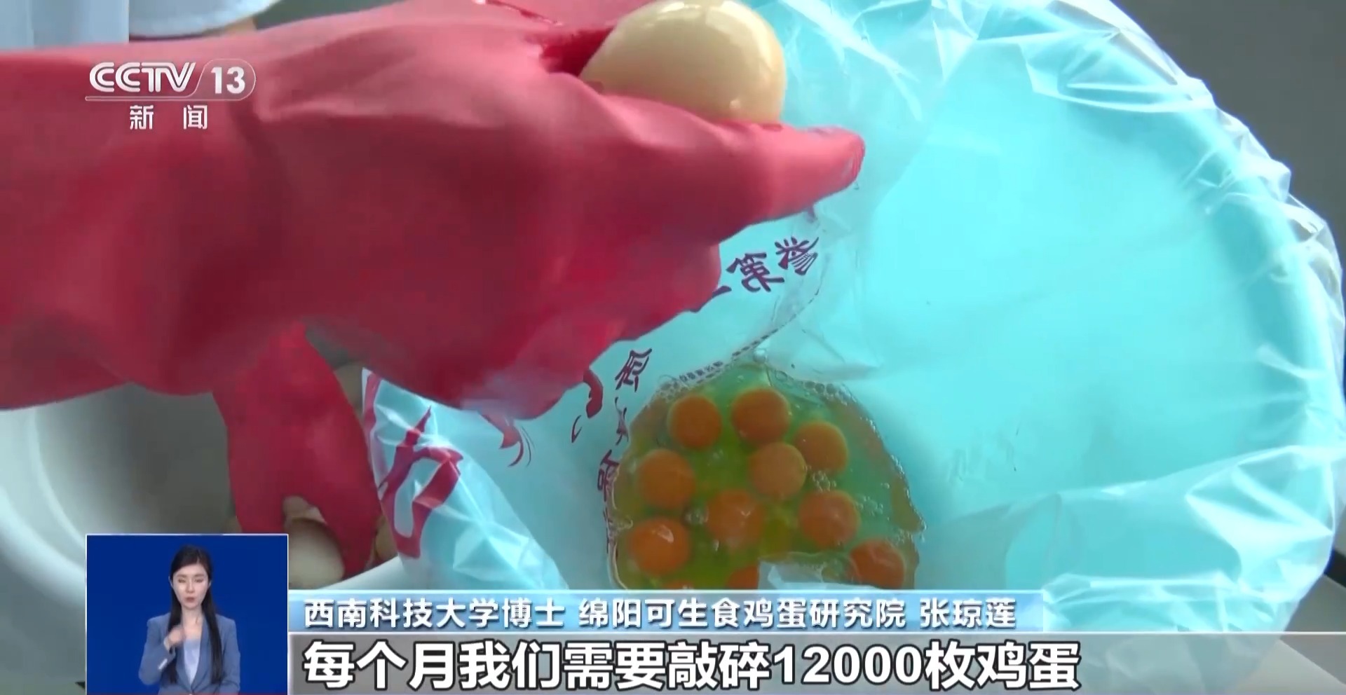 西南科技大学博士、可生食鸡蛋研究院张琼莲:在这个基地,我们每个月需要敲碎12000枚鸡蛋,来检测确认鸡蛋内部是否含有沙门氏菌。
