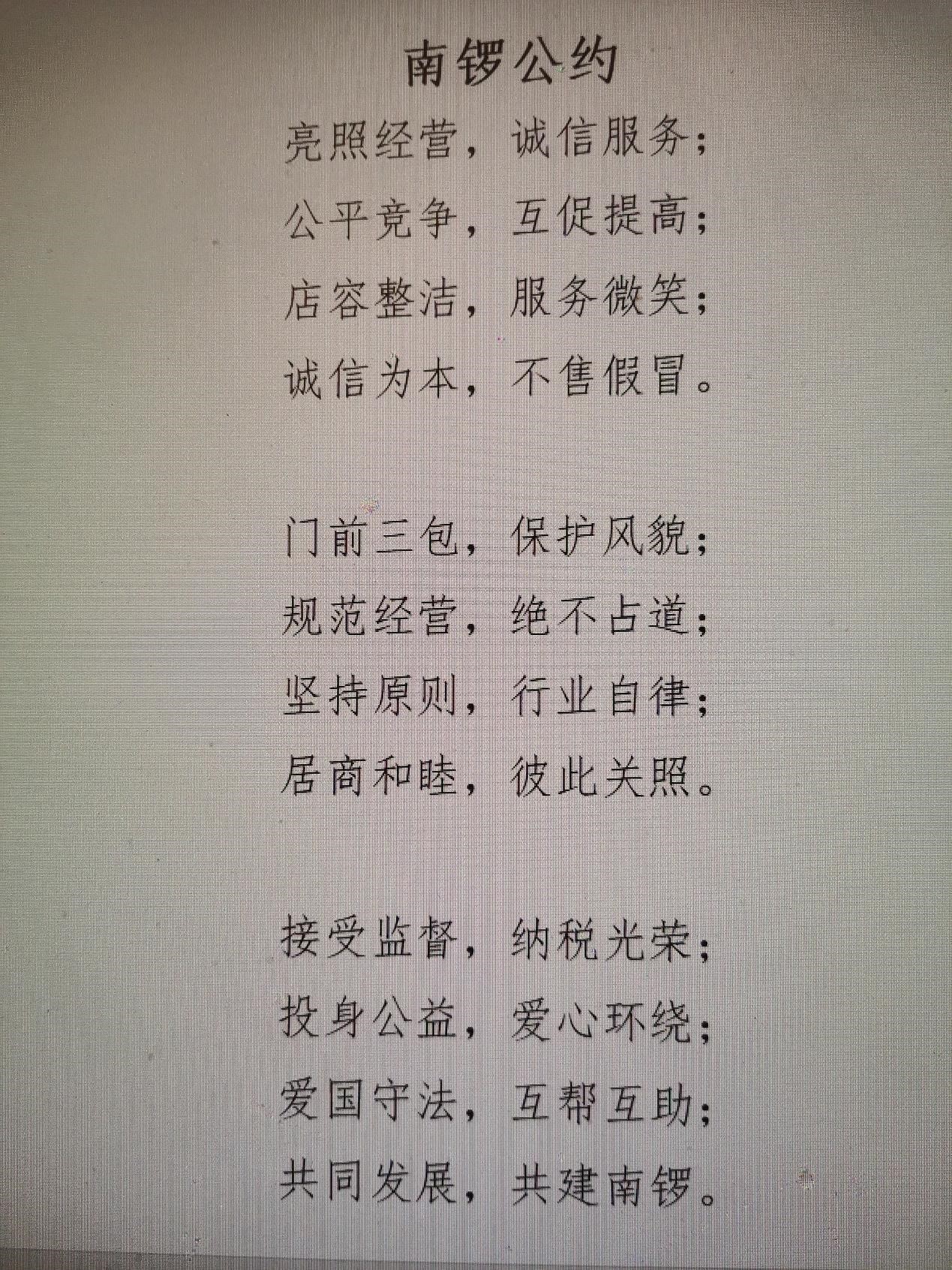 徐岩说:“南锣公约的先行赔付,对于存量的企业没有问题。每年可能还有五分之一左右的商户要流动。只要新商户进入,我们就会让其遵守规则。只要其没有意见,就是对这个公约进行承诺,也必须按要求去做。”