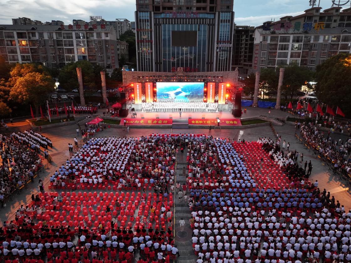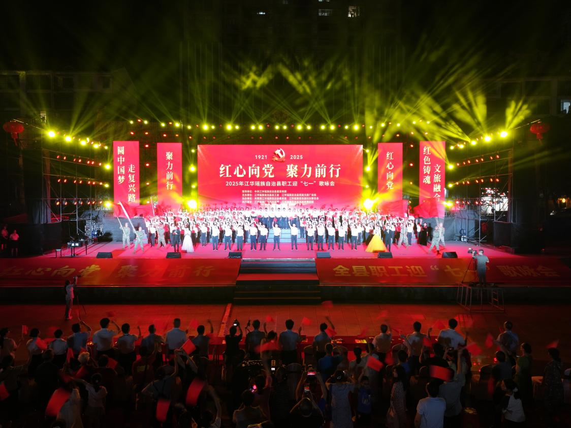 6月28日晚,湖南省江华瑶族自治县举行“红心向党・聚力前行”2025年全县职工迎“七一”歌咏会。来自各条战线的干部职工欢聚一堂,用嘹亮歌声回顾党的光辉历程,用真挚情感讴歌党的丰功伟绩。