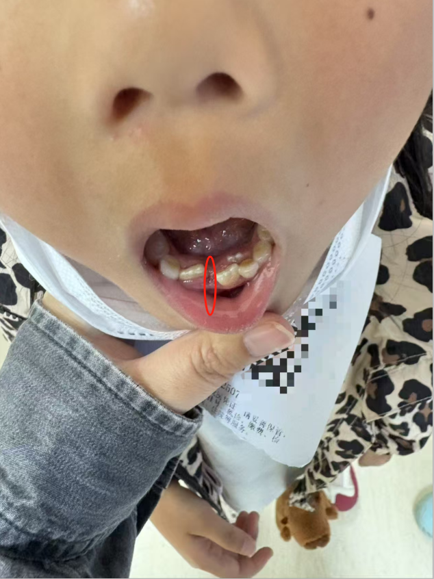 孟女士说本来孩子要拔的是右边牙齿,结果医生却把中间的恒牙拔了。